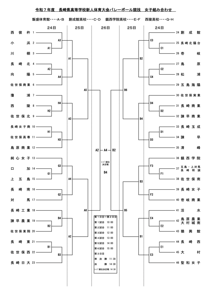 1月24日(土)から開催される『長崎県新人大会』の組合せと会場のお知らせとなります。